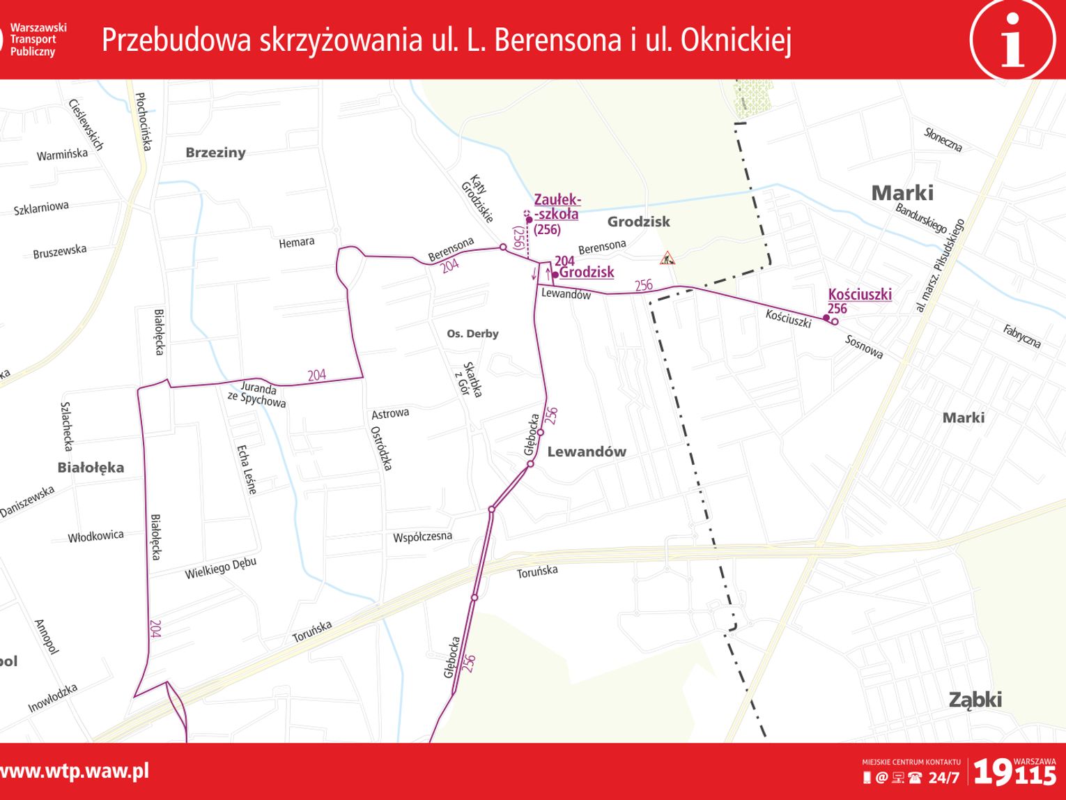 Autobusy nie będą kursowały ul. Oknicką. Z Metra Bródno pojadą skróconą trasą do pętli Grodzisk: