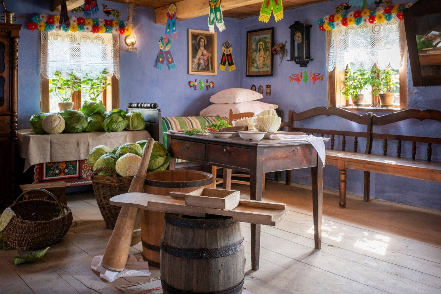 To miejsce, w którym czas się zatrzymał. Na 60 hektarach malowniczego terenu możemy zobaczyć 11 chłopskich zagród, zabytkową karczmę, kuźnię, dwa ziemiańskie dwory oraz drewniany kościół z XVIII wieku. W obejściach pasą się zwierzęta, w sadach rosną stare odmiany jabłoni, a w powietrzu czuć klimat dawnej wsi.