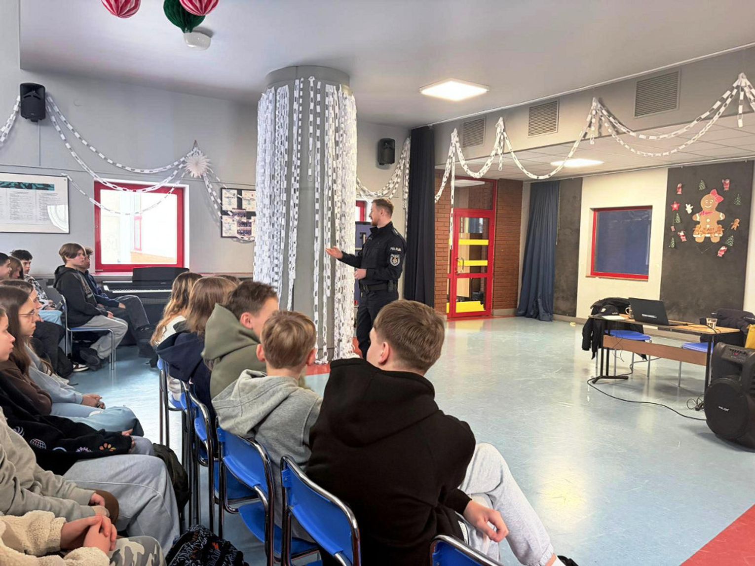 Tematem przewodnim spotkania była odpowiedzialność prawna nieletnich. Policjanci w przystępny sposób wyjaśniali, jakie zachowania są sprzeczne z prawem i jakie konsekwencje mogą ponieść młode osoby, które dopuszczą się czynów zabronionych. Funkcjonariusze podkreślali, że przepisy jasno określają granice wieku, od których nieletni ponoszą odpowiedzialność za swoje działania.